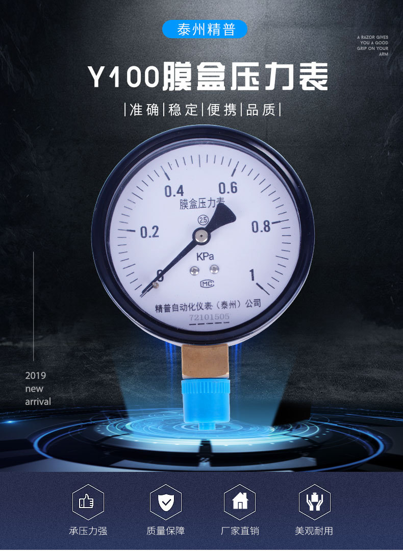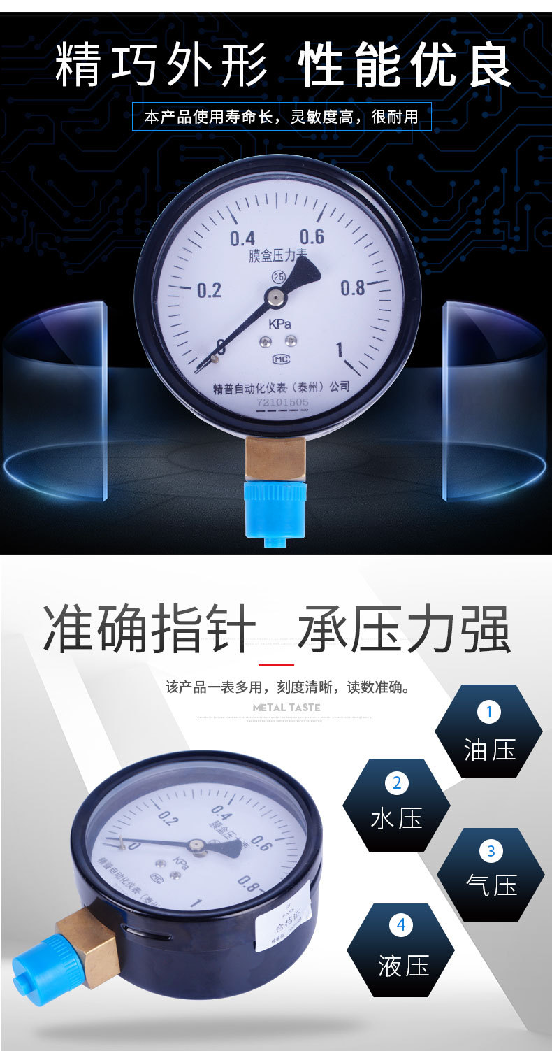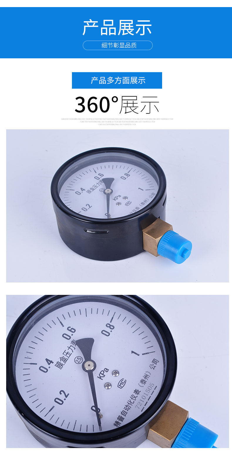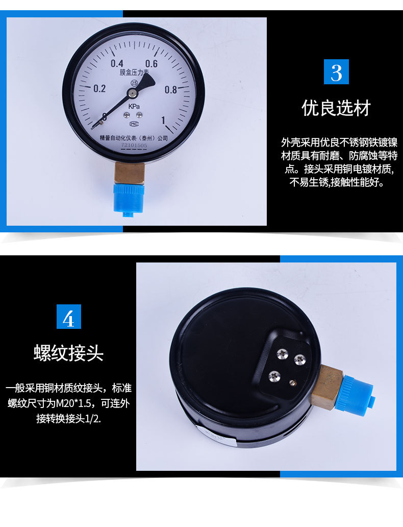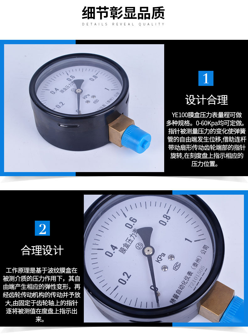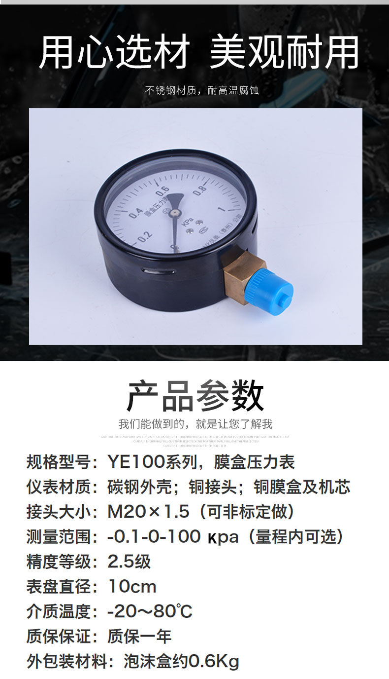 YE100膜盒压力表微压表空气压力表耐震压力表