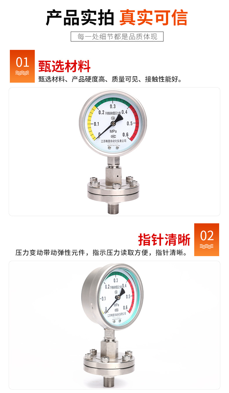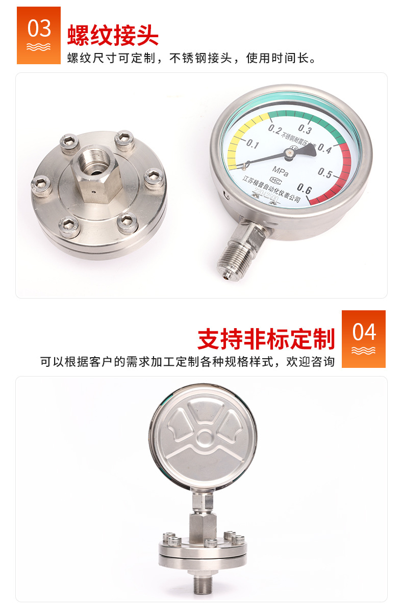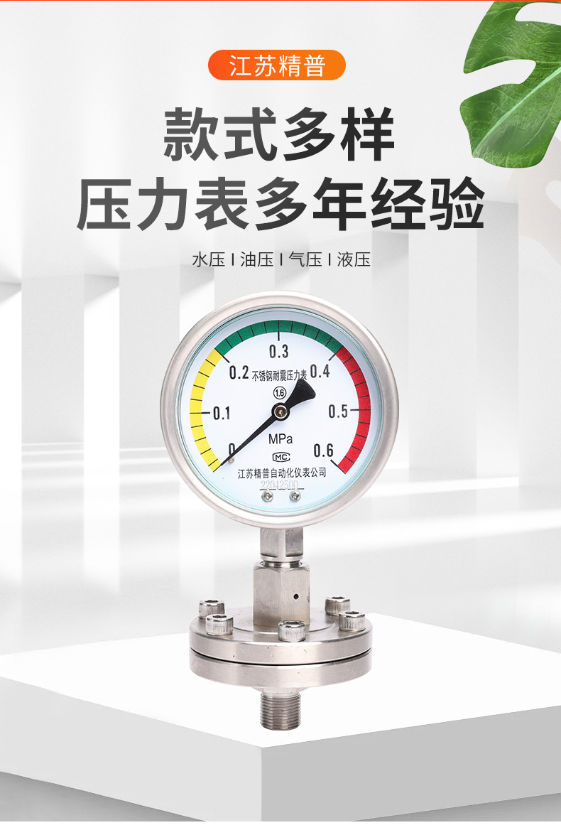 厂家直供YTP100BFML压力表1.6MPA不锈钢螺纹连接隔膜空气耐高温