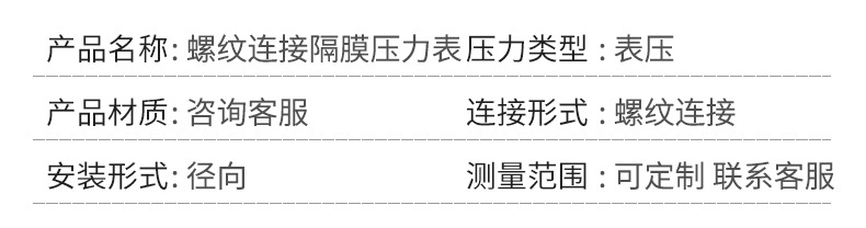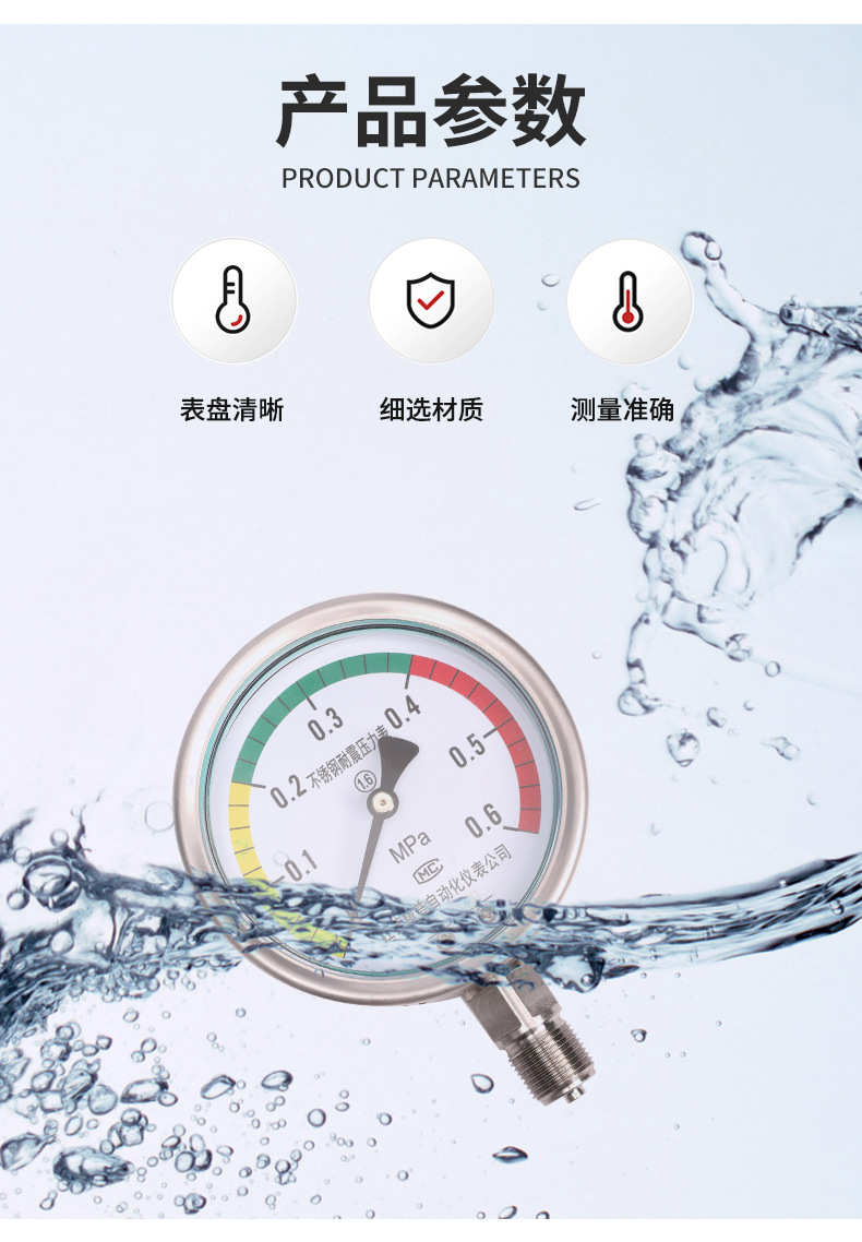 您当前的位置 : 首页 > 产品中心 > 厂家直供YTP100BFML压力表1.6MPA不锈钢螺纹连接隔膜空气耐高温